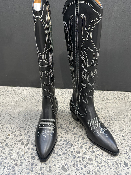 Phalarope Black Leather Flat Boots