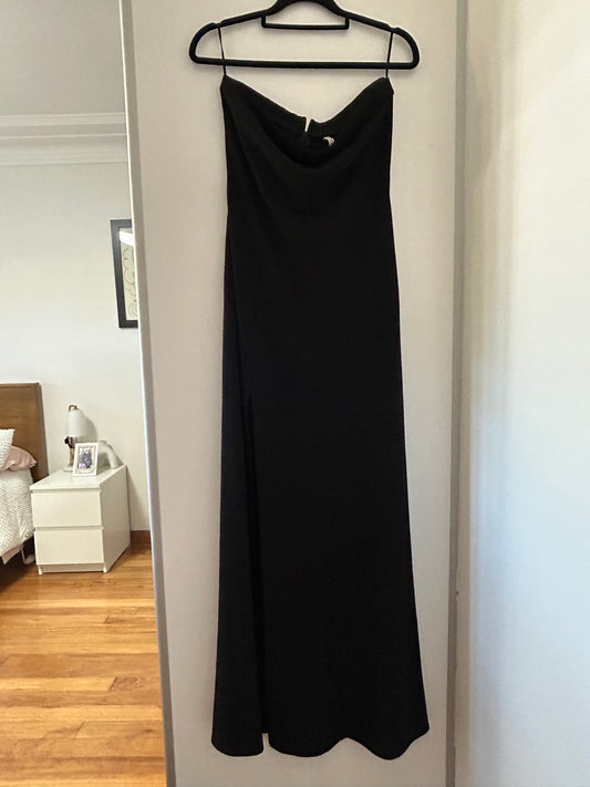 Strapless black dress with split