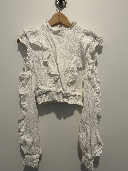 Broderie frill long sleeve crop top