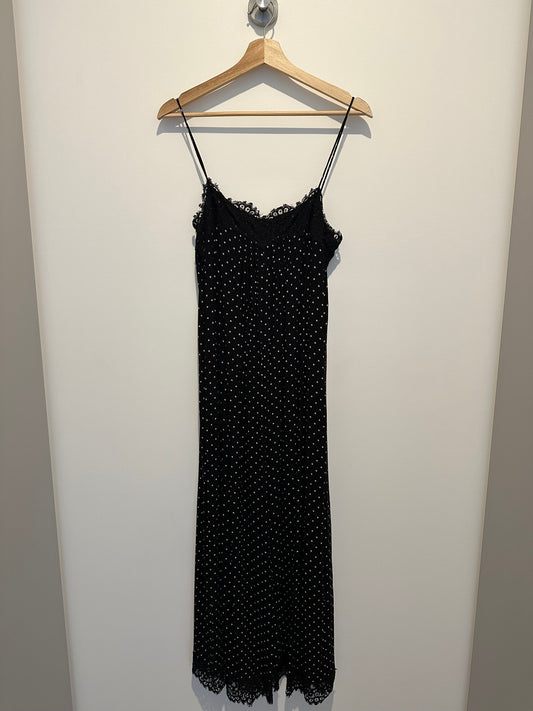 Black & white polka dot jumpsuit with lace trim