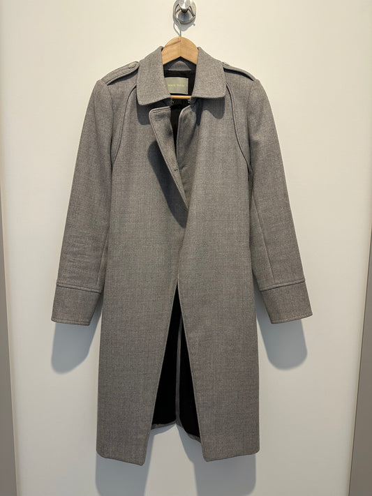 Asymmetrical open front wool coat