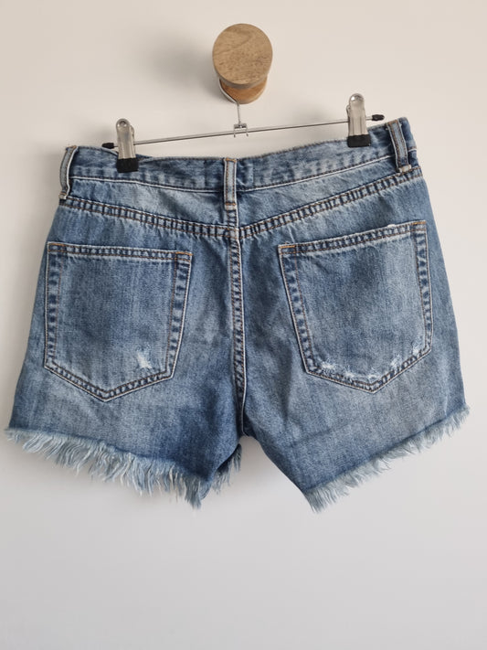 Distressed denim shorts