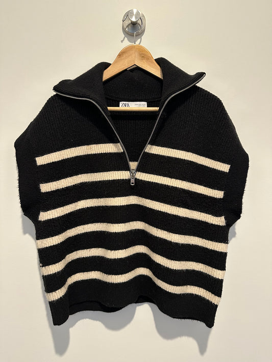 Black & cream half zip knit vest