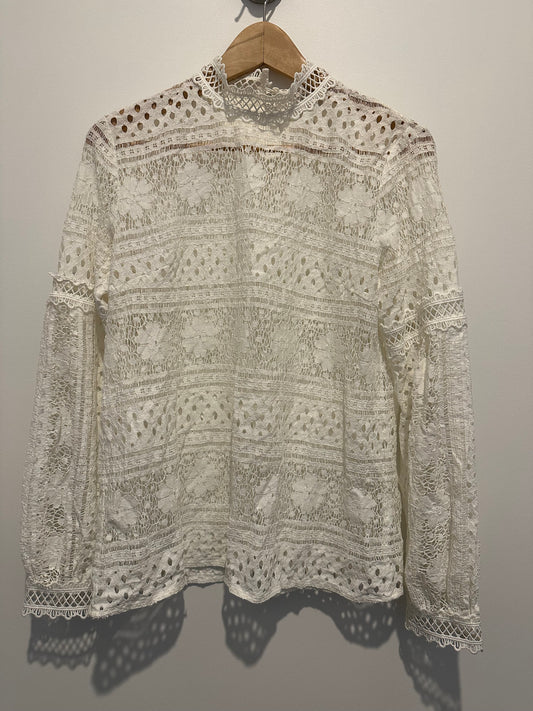 Lace long sleeve top with mock neck