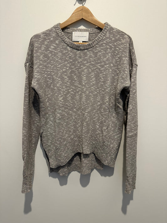 Crew neck drop hem cotton linen knit