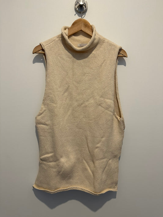 Cream longline cotton knit vest with mock neck & side splits