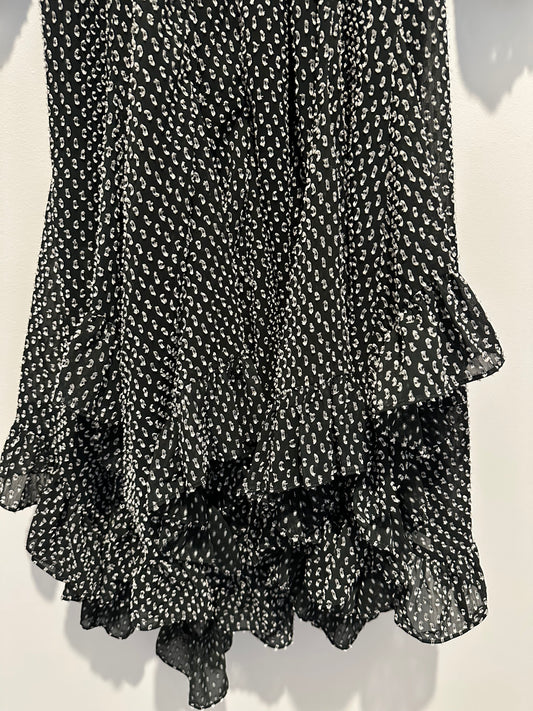 Khaki & cream polka dot tiered silk skirt
