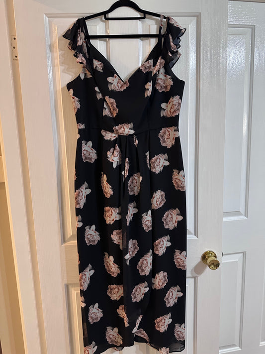 Wayne Cooper Black Floral Cocktail Dress Size 14 Excellent Condition #10161