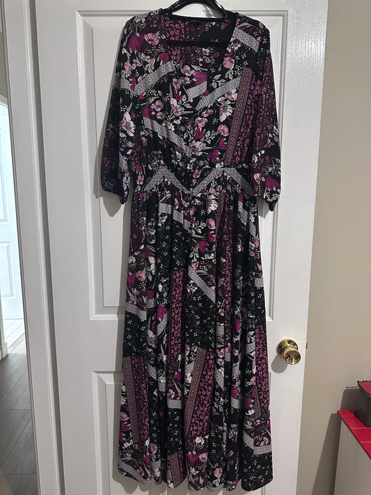 Katies Floral Maxi Dress 3/4 Sleeve Size 12 Excellent Condition #9996