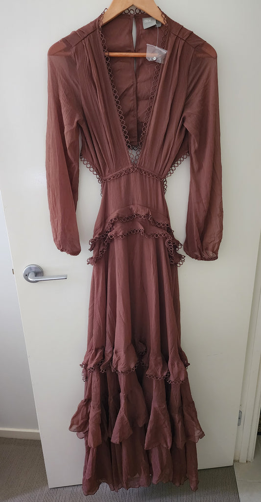 Shona Joy Long Sleeve Backless Tiered Midi Dress Size 12 New With Tags #15360