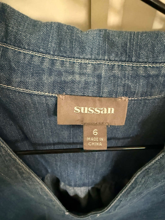 Sussan Denim Long Sleeve V Necked Top Size 6 #7271