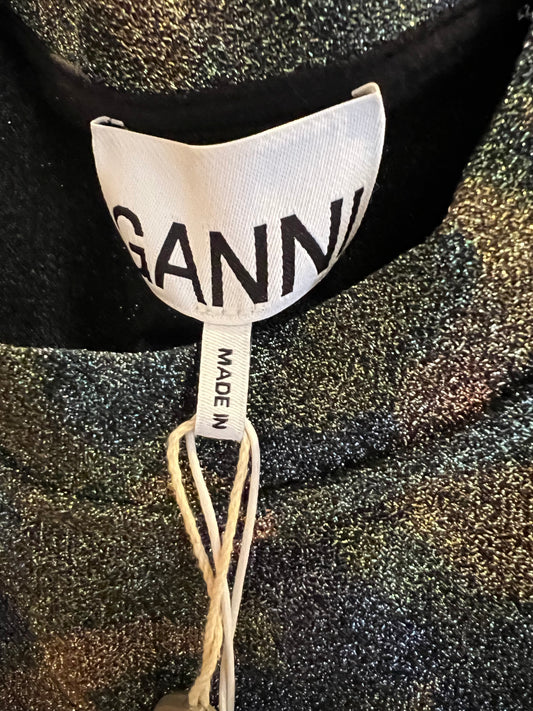 GANNI Metallic Printed Stretch Jersey T-shirt Size 10-12 #6827