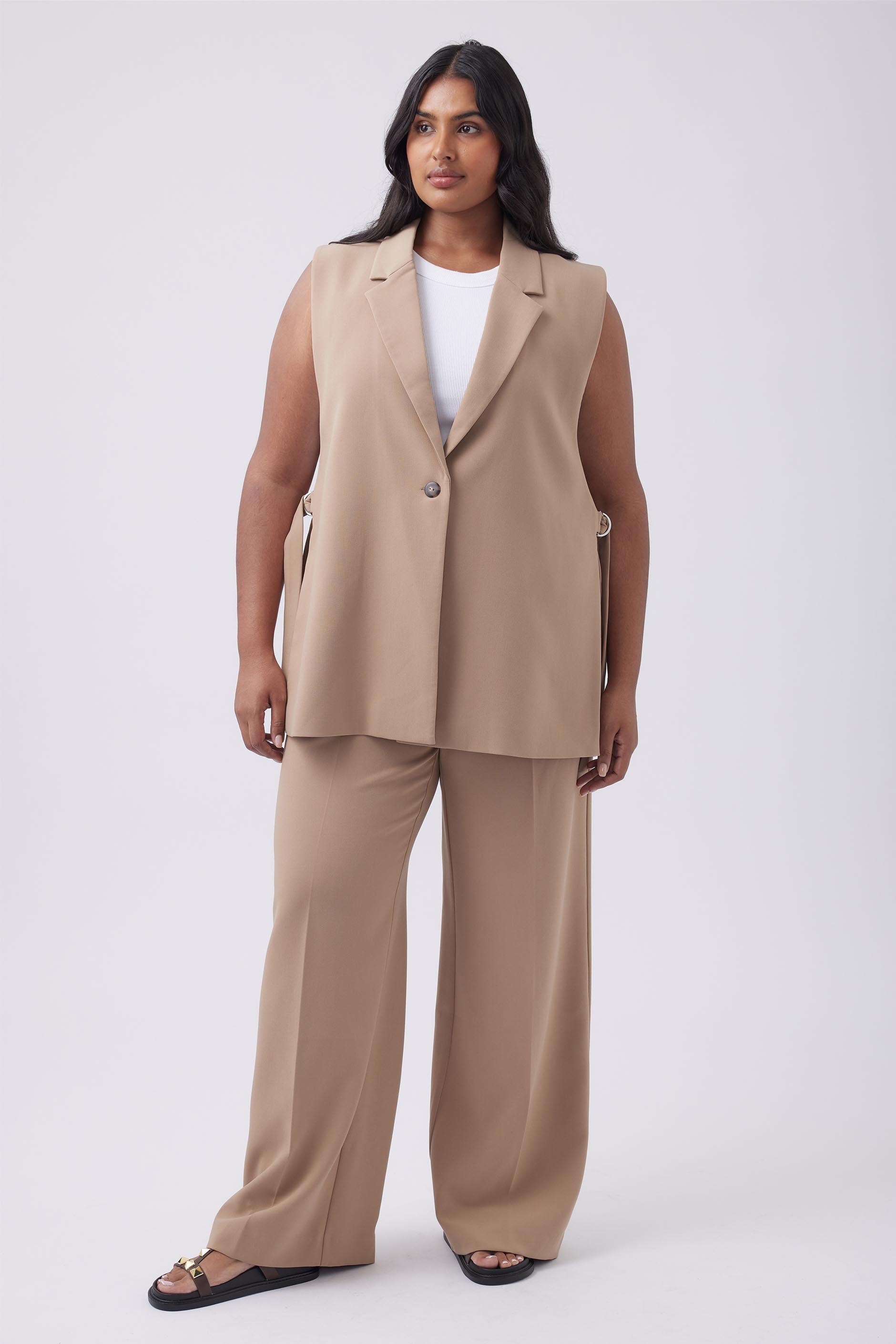 - Model 2 is 183cm/ 6’0” and is wearing a size 18 (Camel)