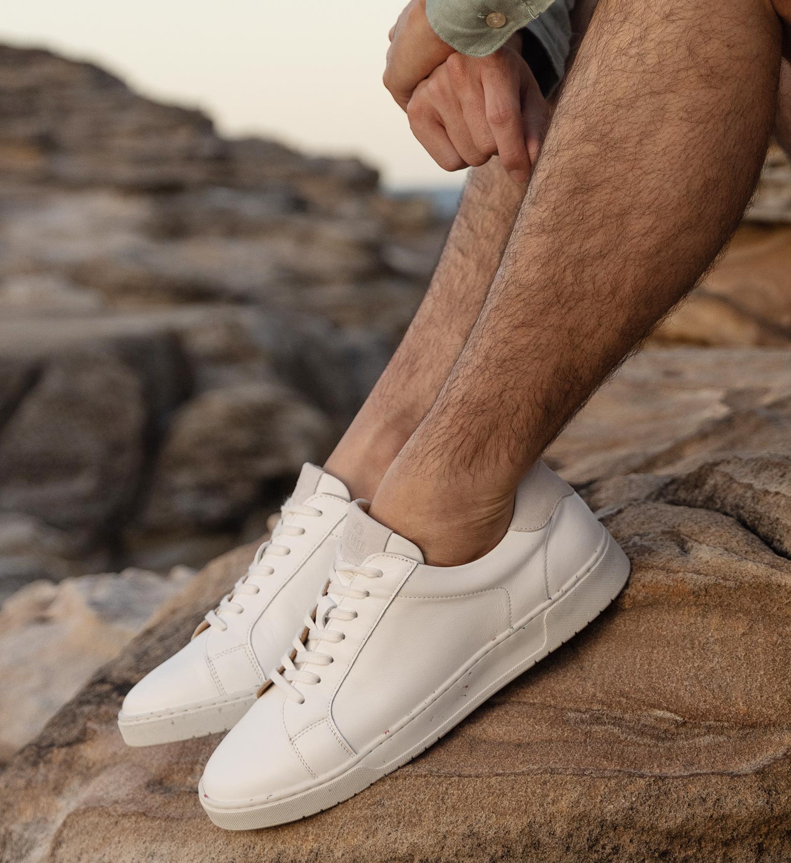 - Leather upper, 60% natural rubber (40% binding agents)outsole, biodegradable leather lining, and a leather-lined sugarcane footbed.