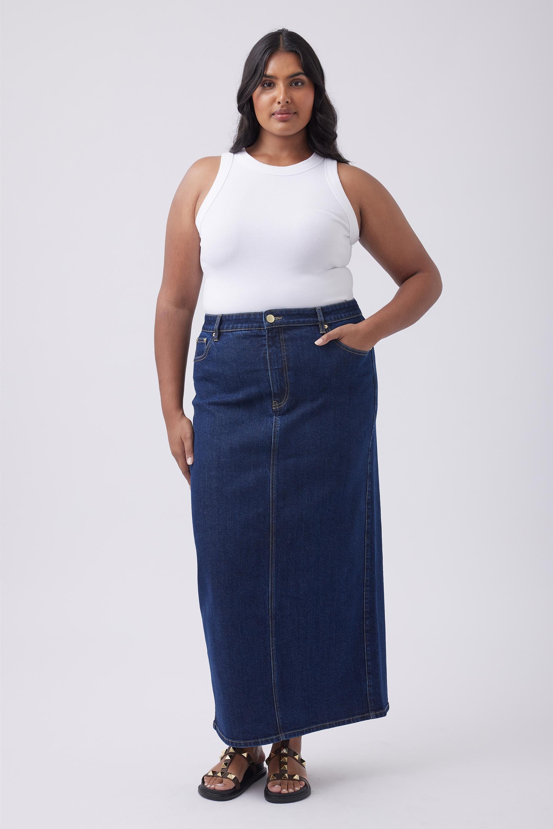 - Denim maxi skirt