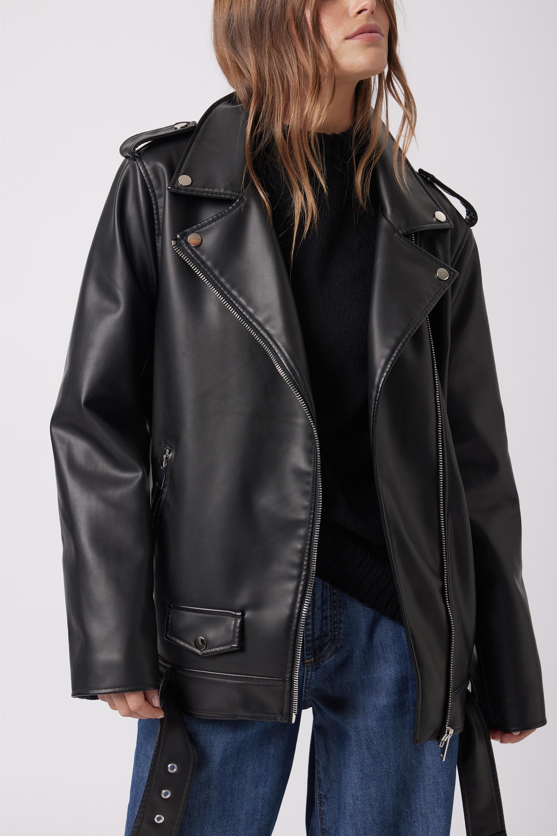 - Faux leather biker jacket