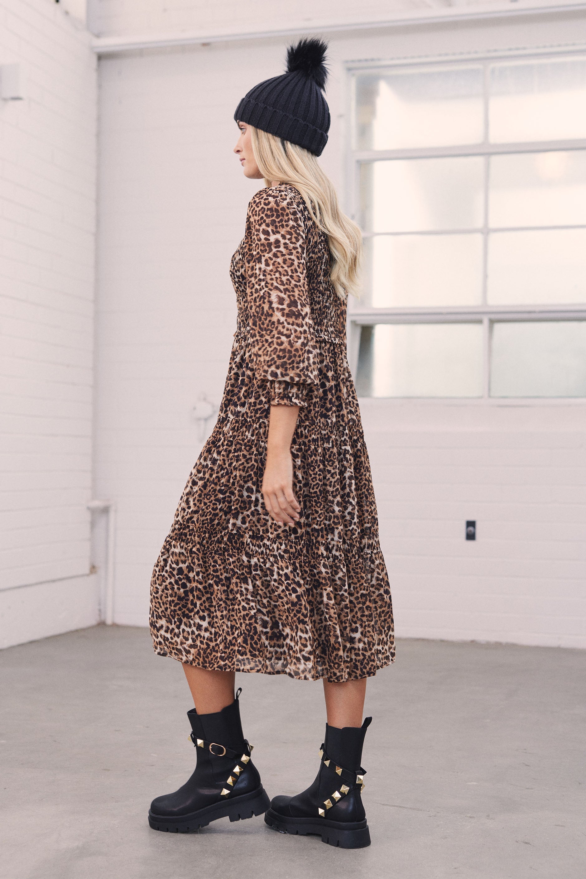- Soft tiered silhouette