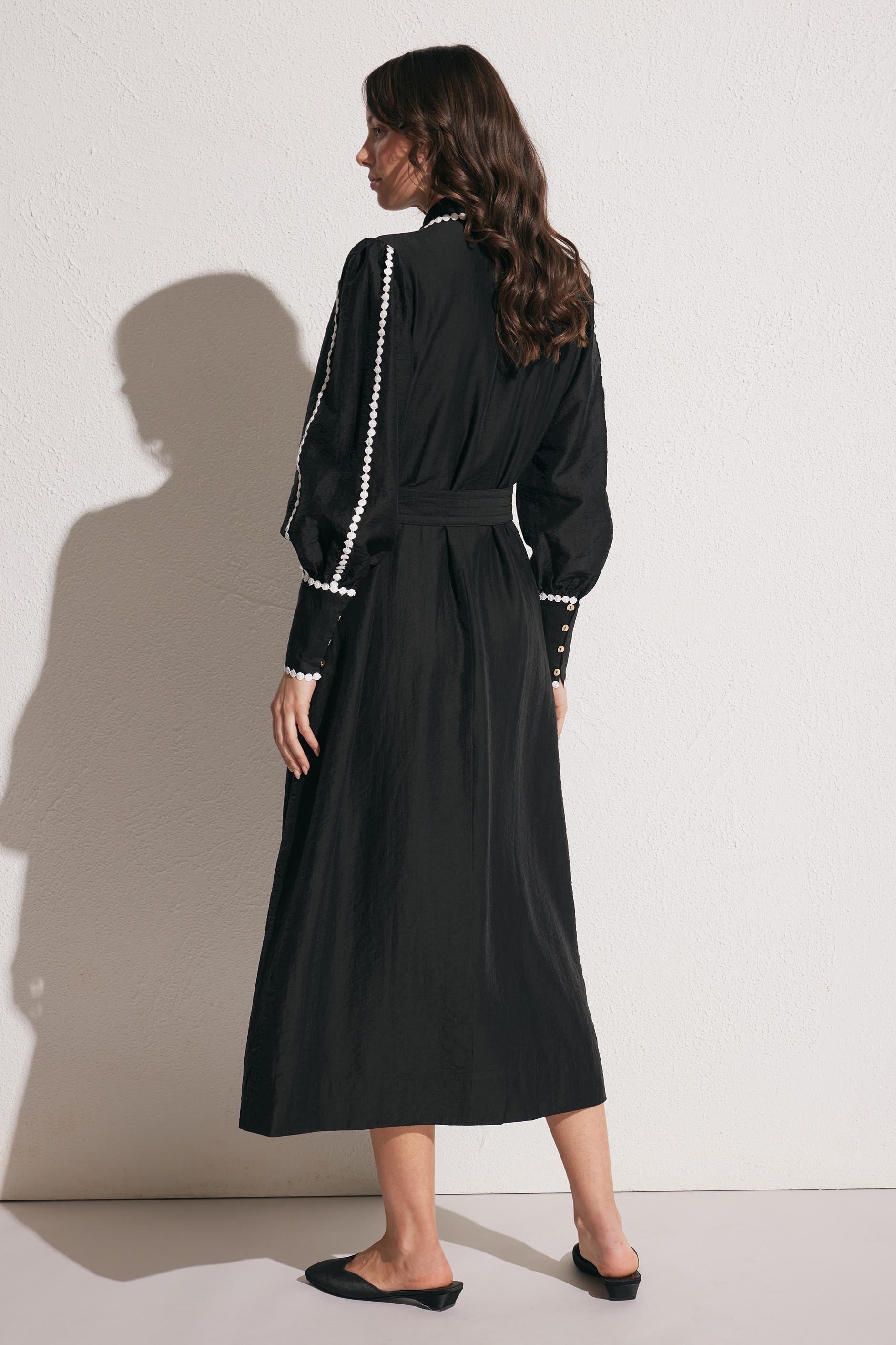 - Full length gathered sleeves with extended cuff with button through closure
