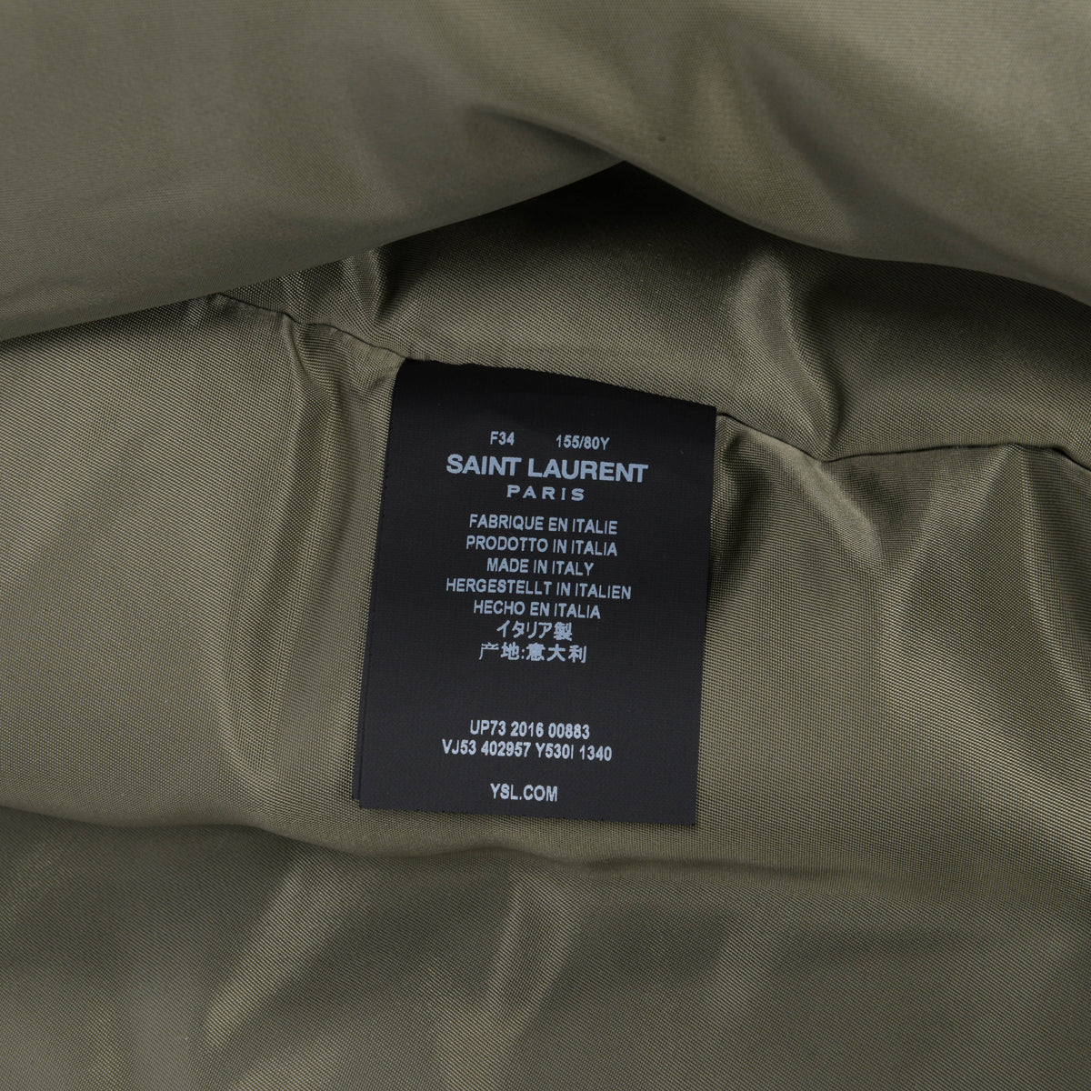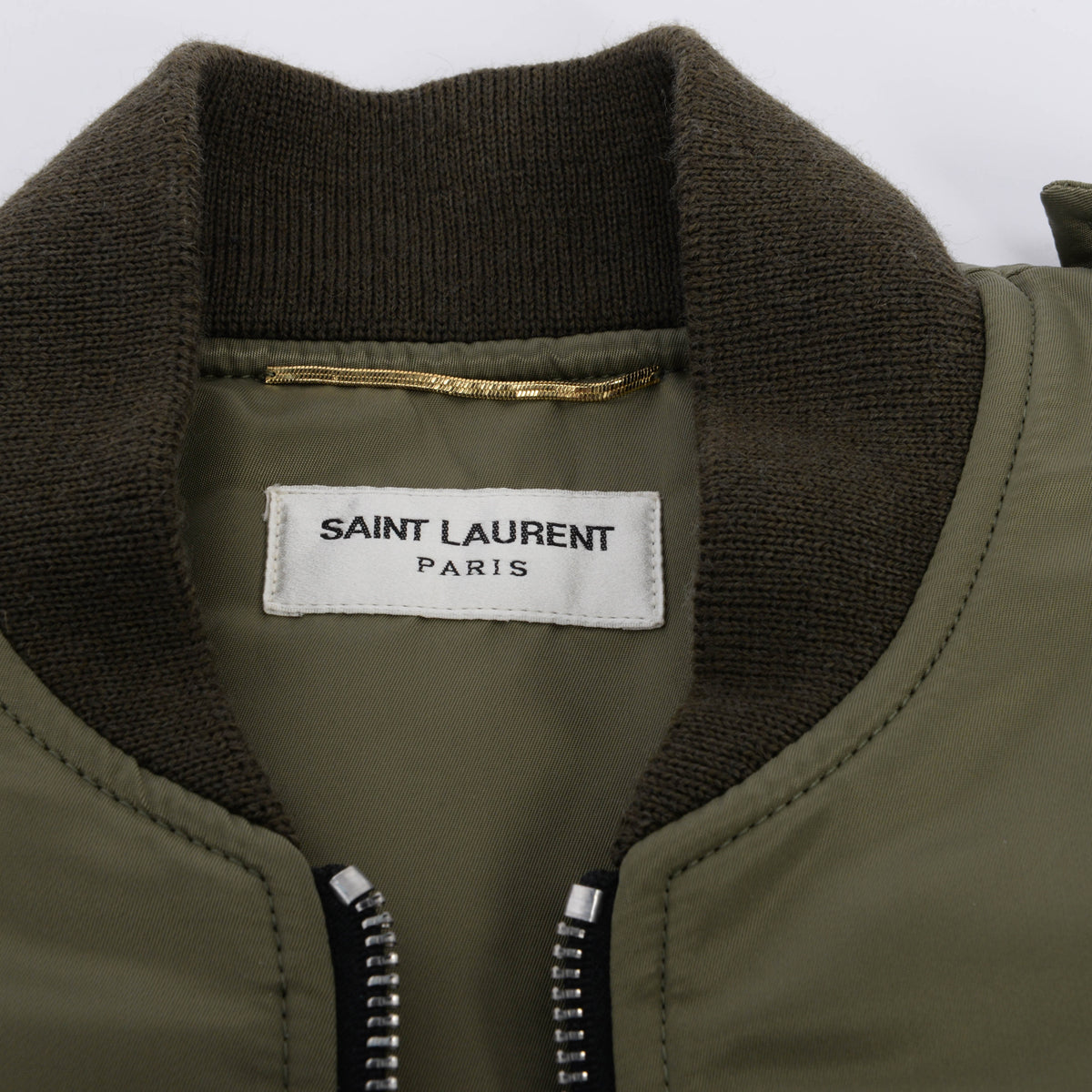 A Saint Laurent Khaki Nylon Bomber Jacket.