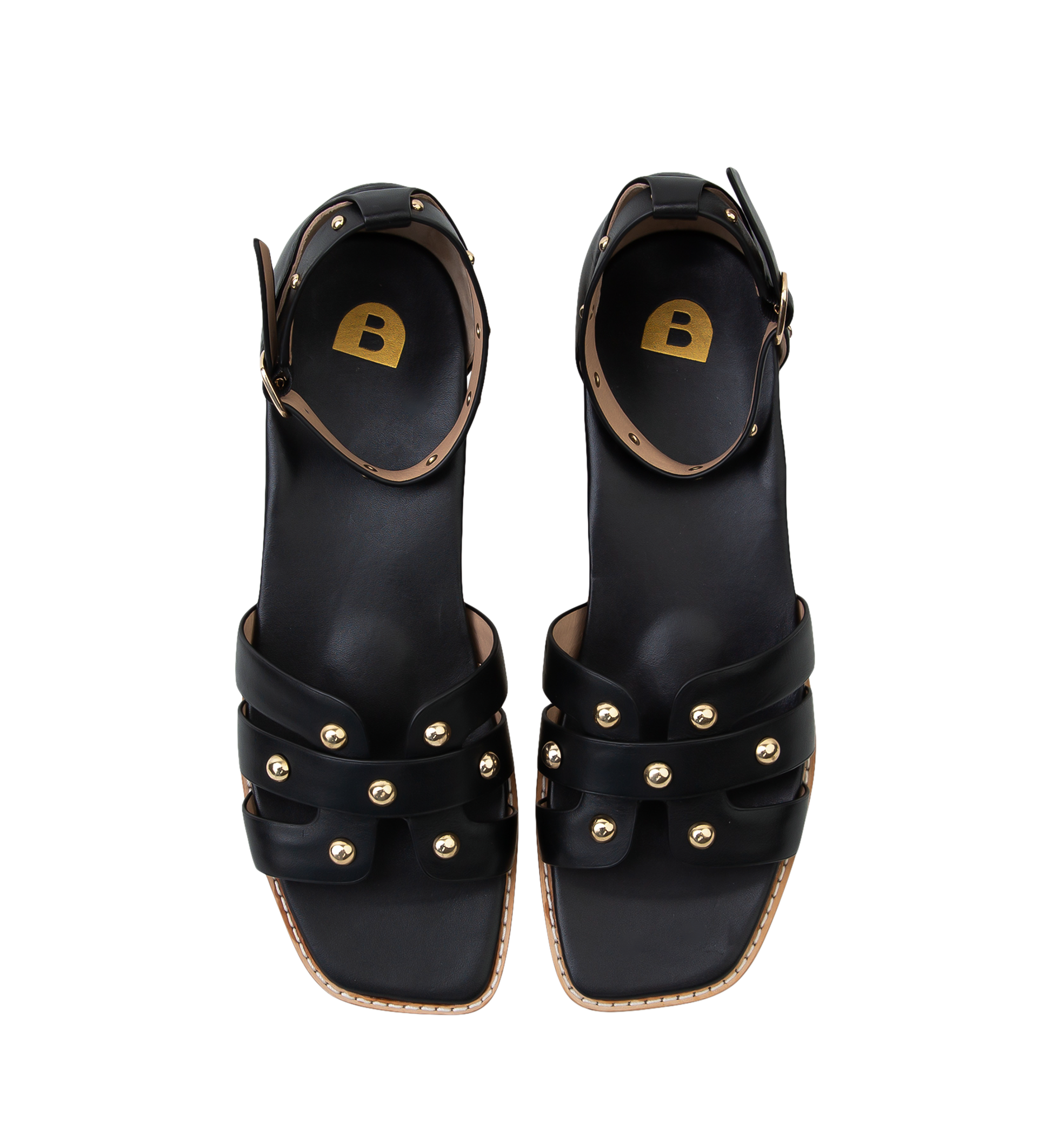 Bared Footwear Black Studded Leather Flat Sandals Size 40 New With Tags #11433