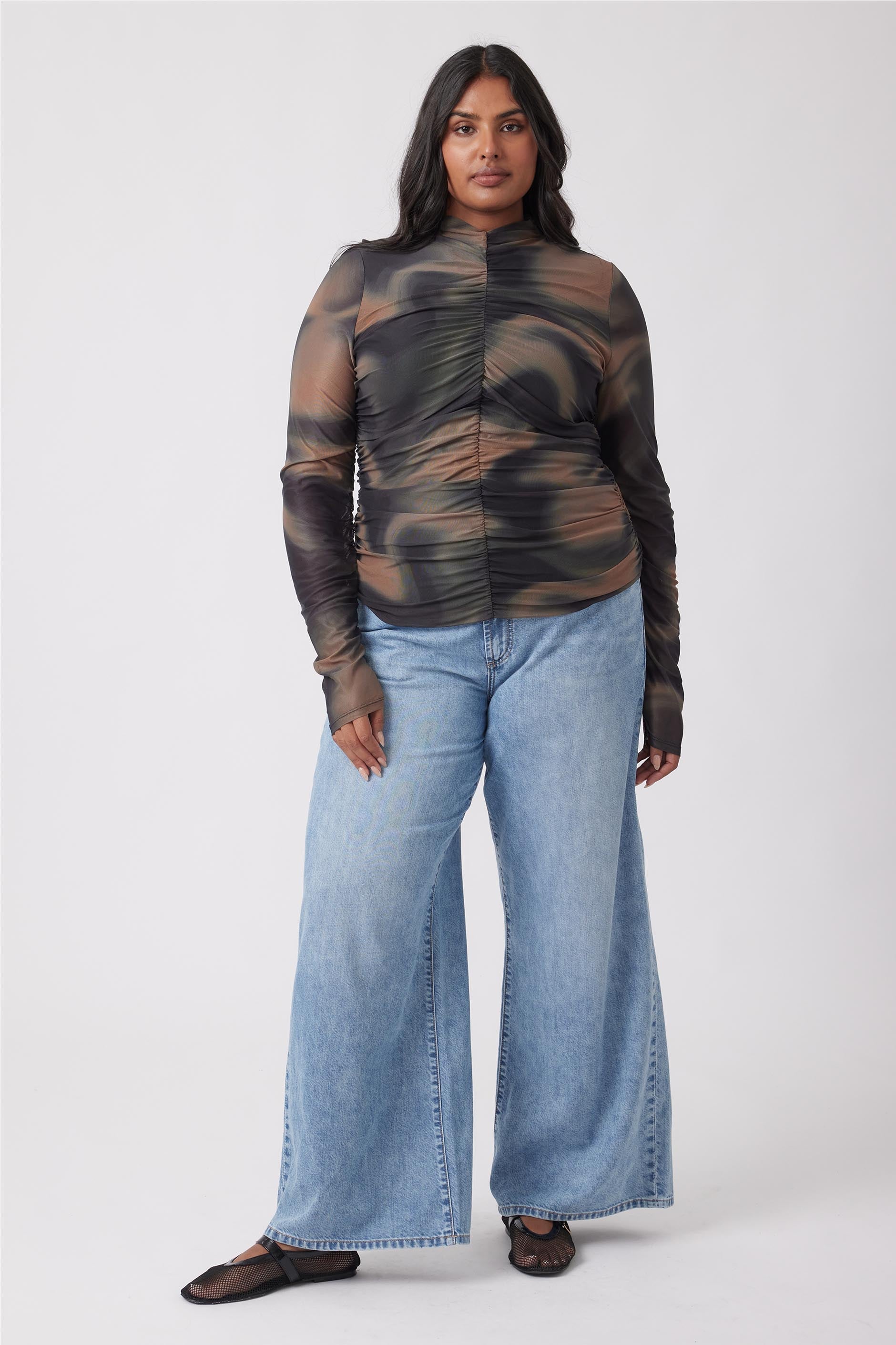 DECJUBA Rebecca Mesh Ruched Top Size L New With Tags RRP $79.95 #15376