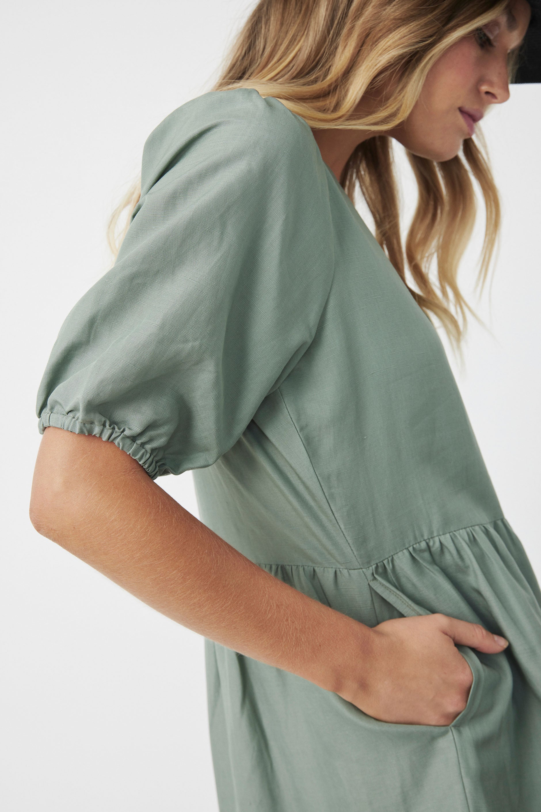 - Short sleeves with elasticated cuffs