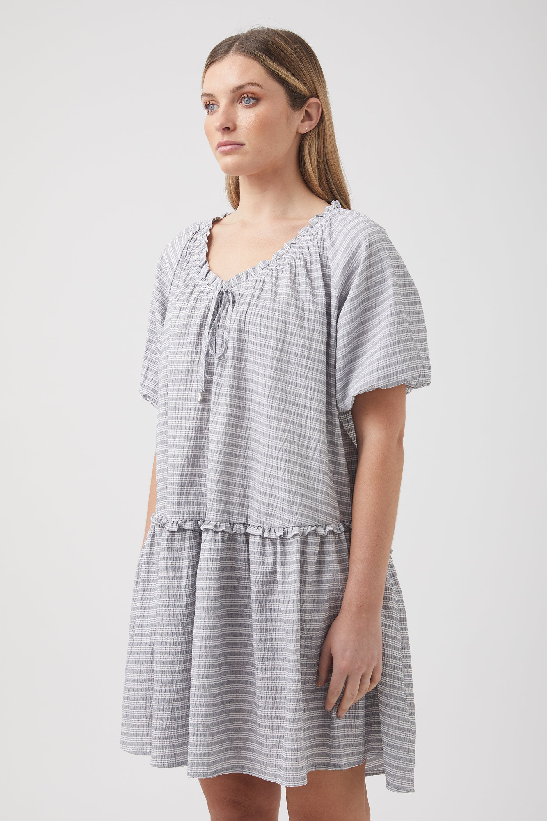 - Frill on neckline and tiers