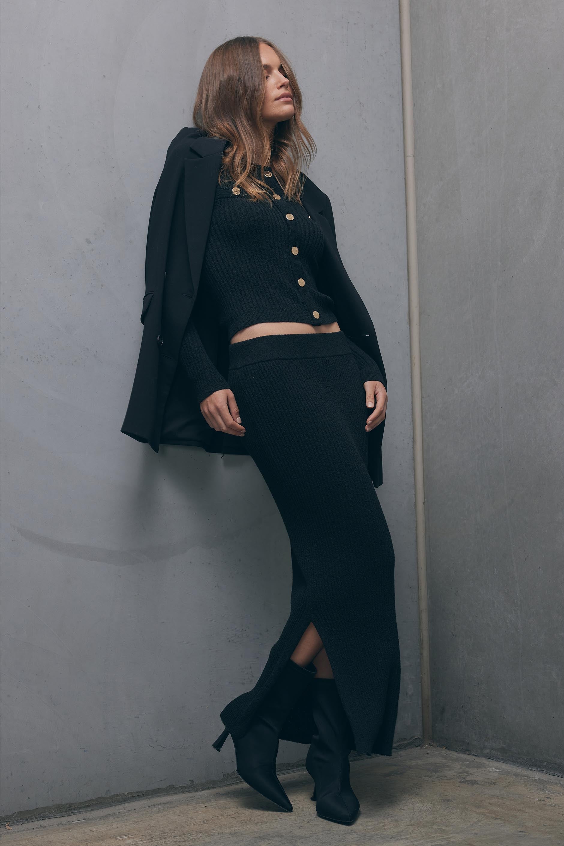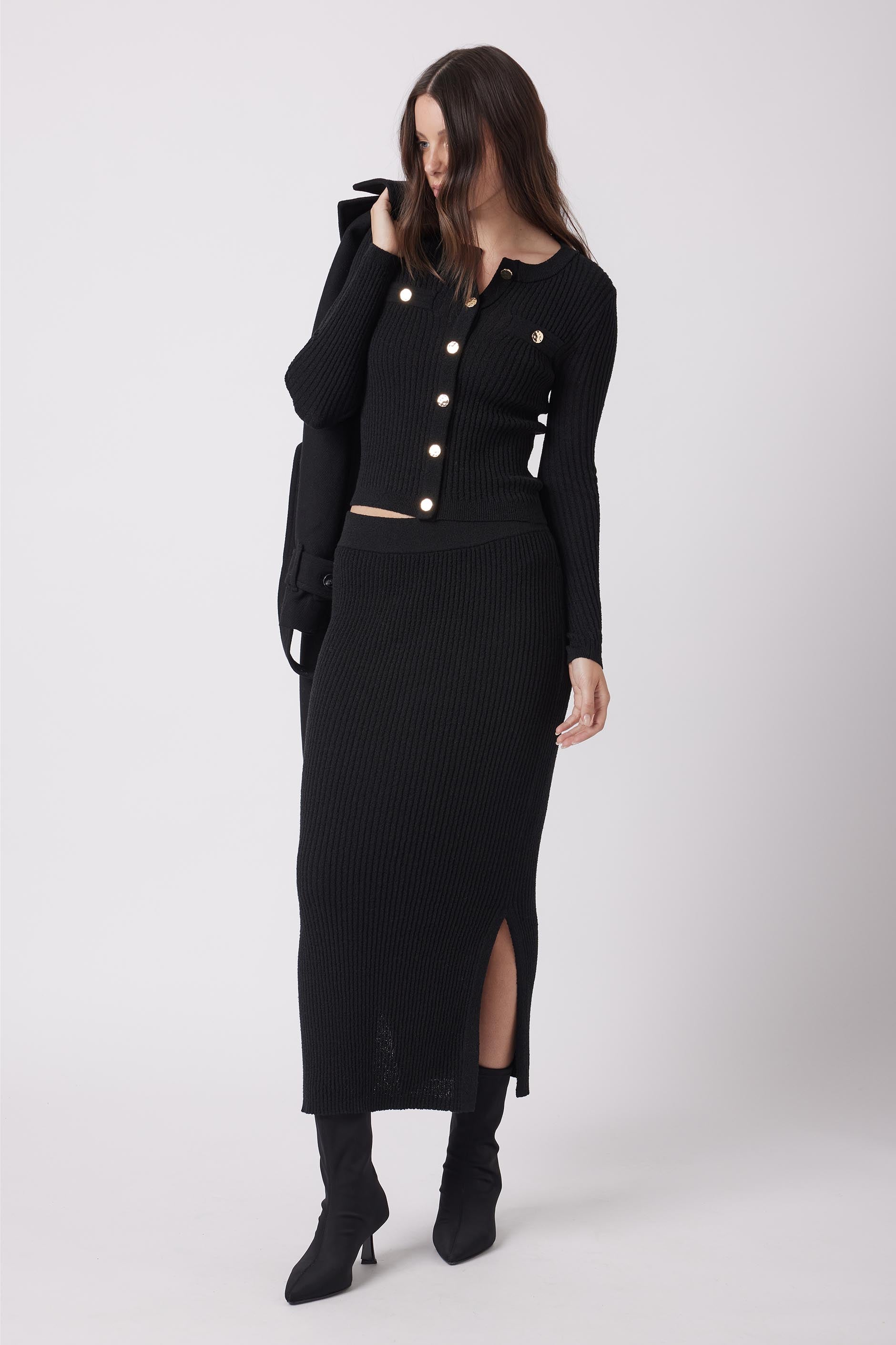 - Neat fit, midi length