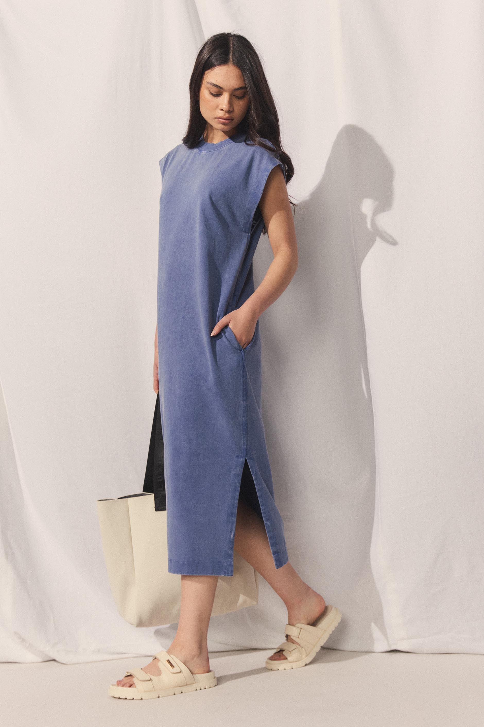 - Side splits at hem